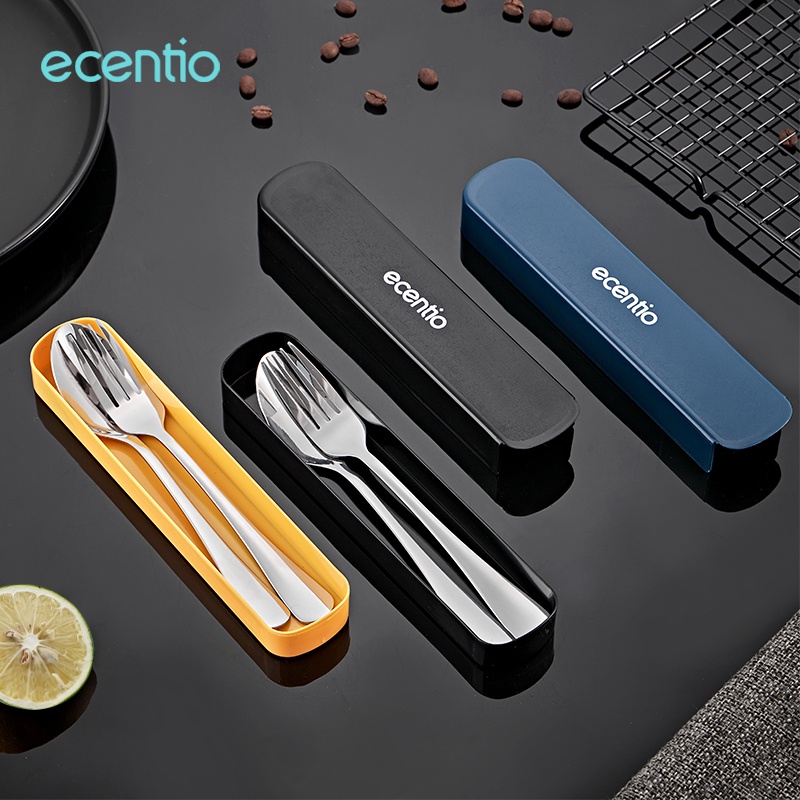 Detail ecentio 2pcs Sendok Makan Dengan Kotak Berbahan Stainless Steel Sumpit Sendok Grapu Set