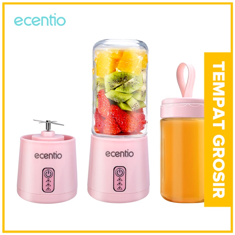 Detail ecentio 600ml 2 botol Kaca Blender cangkir ganda Mini Juicer/4 mata pisau 2 botol Juicer cup portable