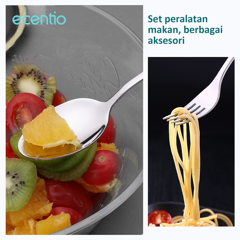 Detail ecentio & FOODI Peralatan Makan Sendok Makan 2pcs Dengan Kotak Hitam Berbahan Stainless Steel Sumpit Sendok Grapu Set