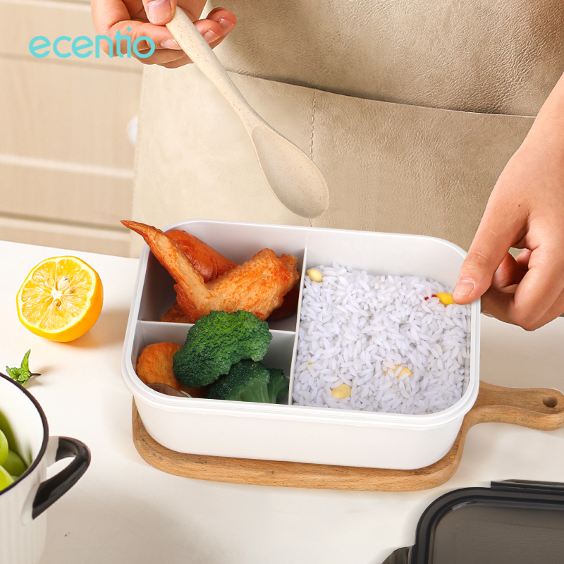 Perlengkapan Rumah > Peralatan Dapur > Tempat Penyimpanan Makanan > ecentio KOTAK MAKAN SET FREE Sendok lunch box BPA Free 3 Sekat Anti Tumpah 1300ml With Bag