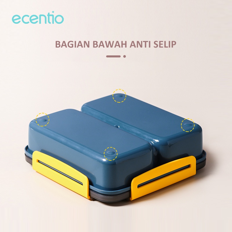 Detail ecentio Lunch Box 3 Grid Kotak Makan Anti Tumpah Dengan Gratis Sendok Berbahan PP 1100ml BPA Free/Free Sendok&Sumpit