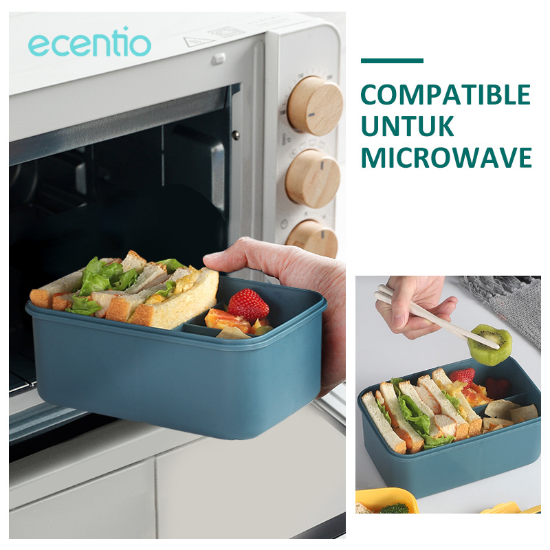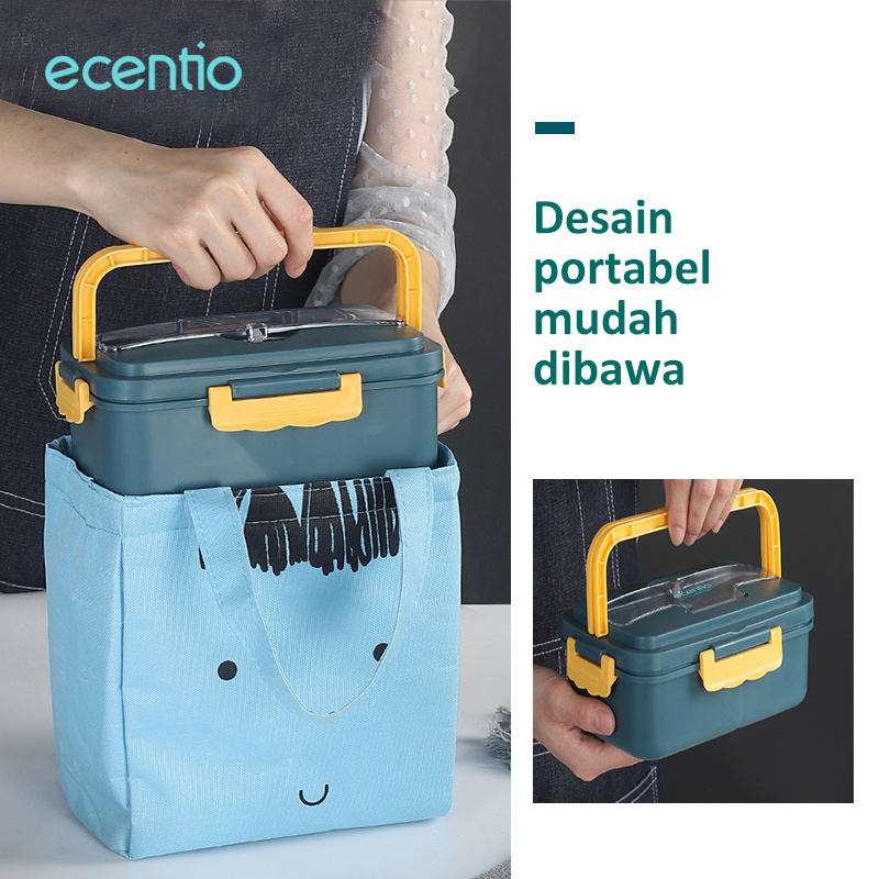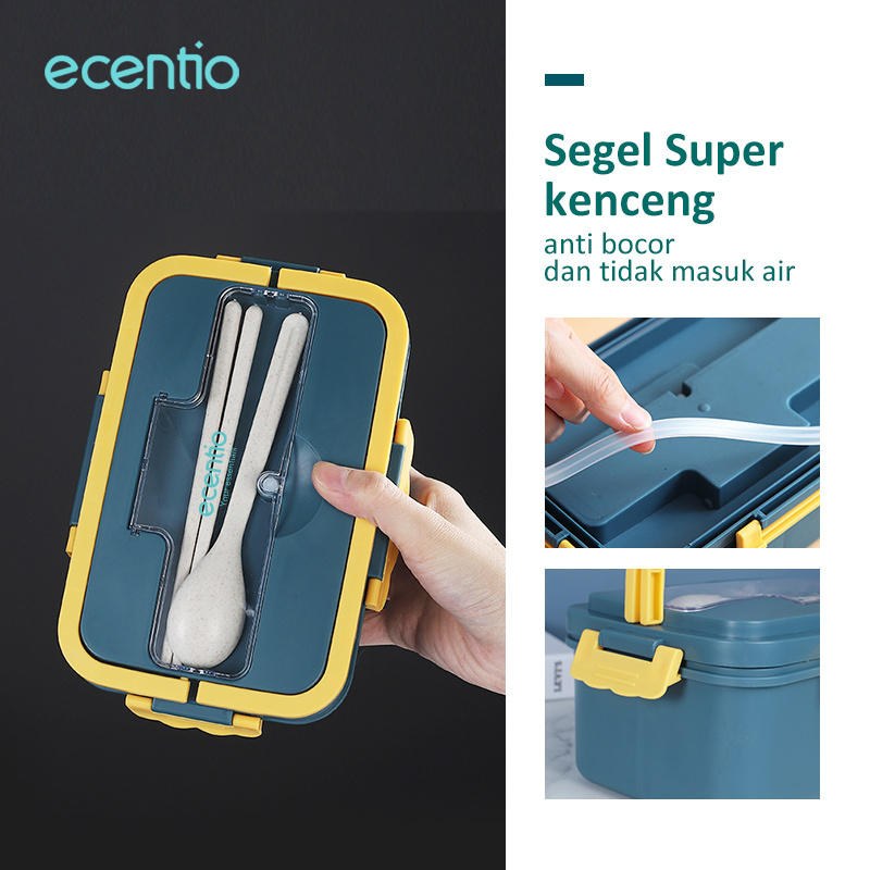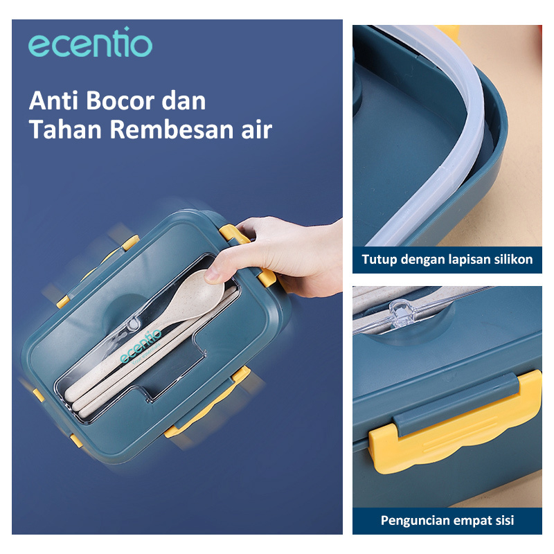 Detail ecentio Lunch Box stailes 3 sekat anti tumpah tempat penyimpan bekal keman kotak makan FREE SENDOK