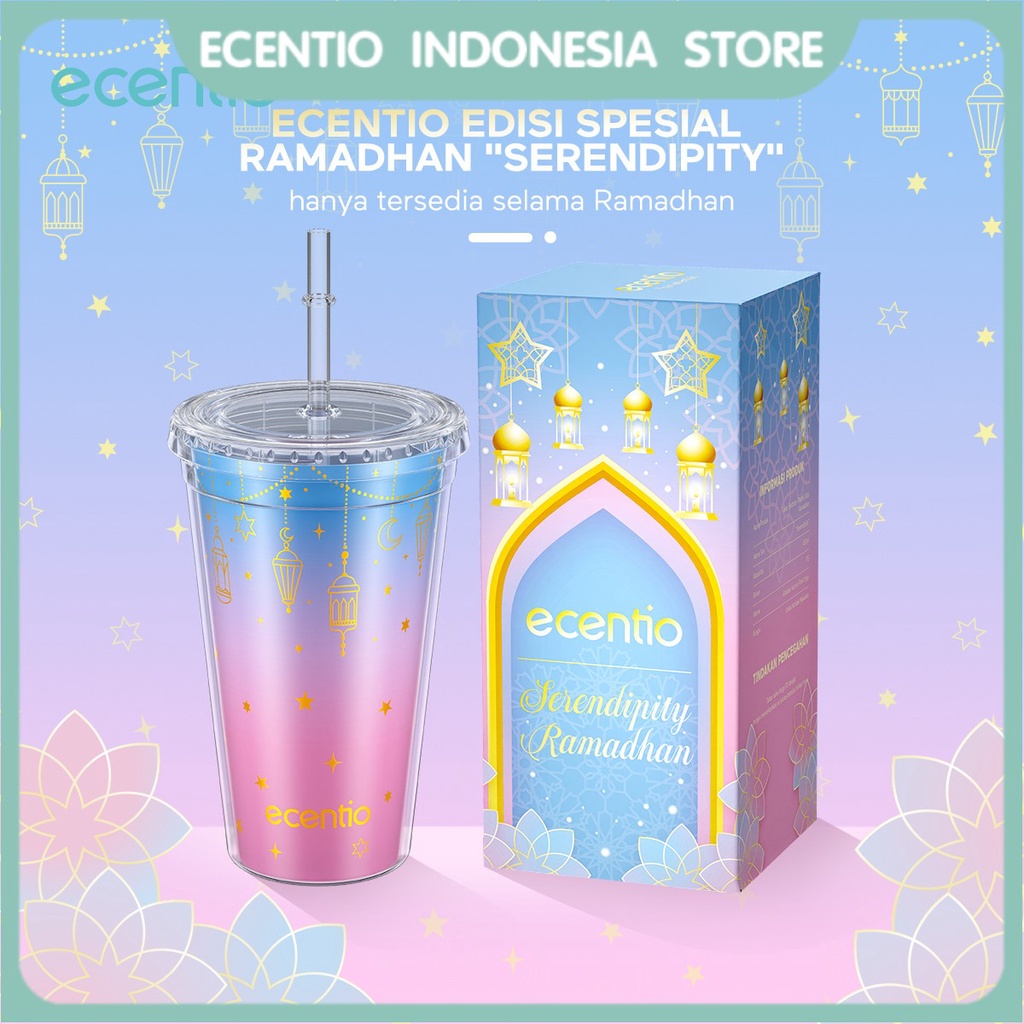 ⭐ecentio edisi spesial Ramadhan "serendipity", hanya tersedia selama Ramadhan 🌙pilihl cara meminum semaumu 💡perubahan warna pelangi yang mewah ✨Kemasan Box eksklusif Ramadan: Extra kemasan buble untuk perlindungan ekstra