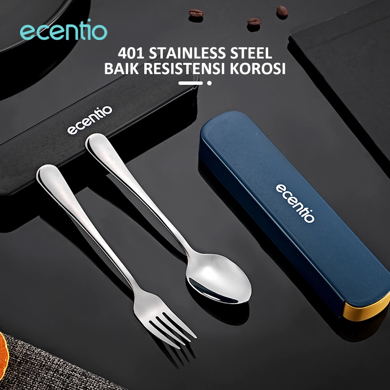 Detail ecentio set peralatan makan stainless steel 2pcs sendok garpu Cutlery Set Hitam tableware