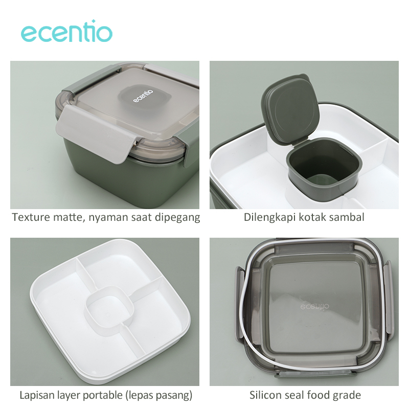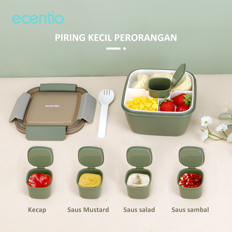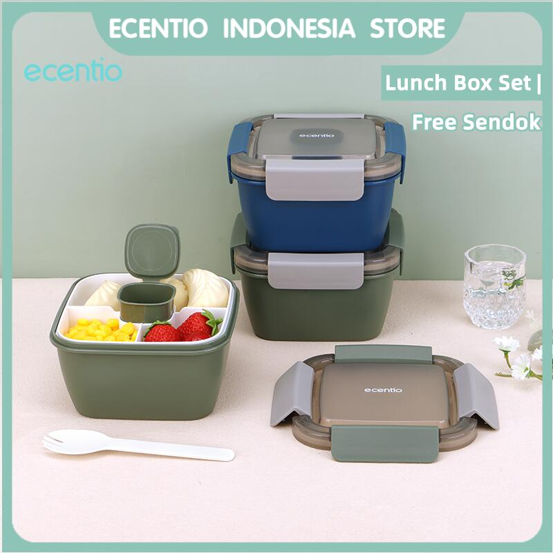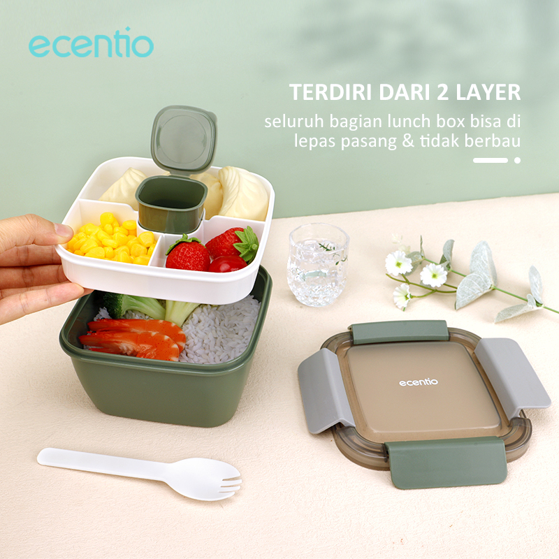 Perlengkapan Rumah > Peralatan Dapur > Tempat Penyimpanan Makanan > ecentio tempat makan 2 susun anti tumpah lunch box kotak makan BPA Free 1100ml Free Wadah saus kecil