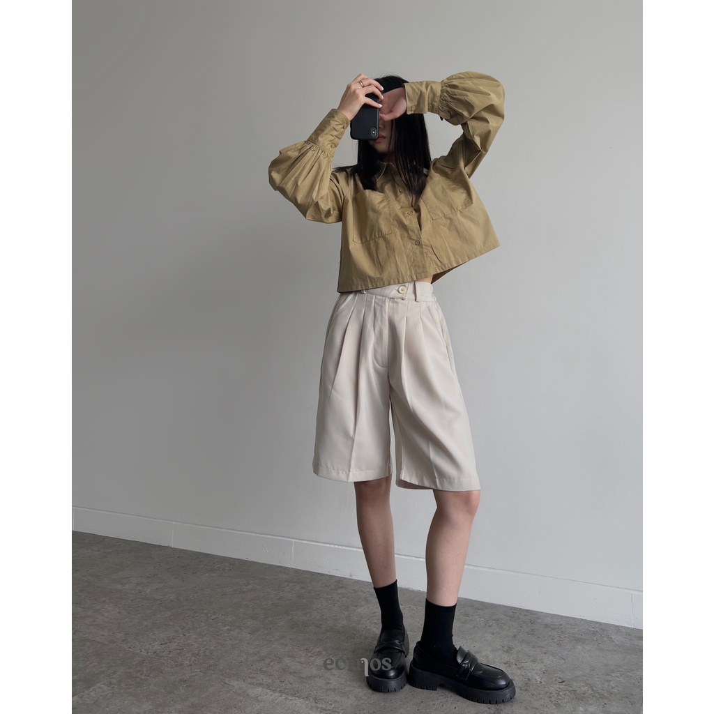 GLORIA Crop Top: 50% cute, 50% bold, and a comfortable cropped shirt. Perfect for an outerwear too! • cropped shirt & puffed sleeves • two front-pockets