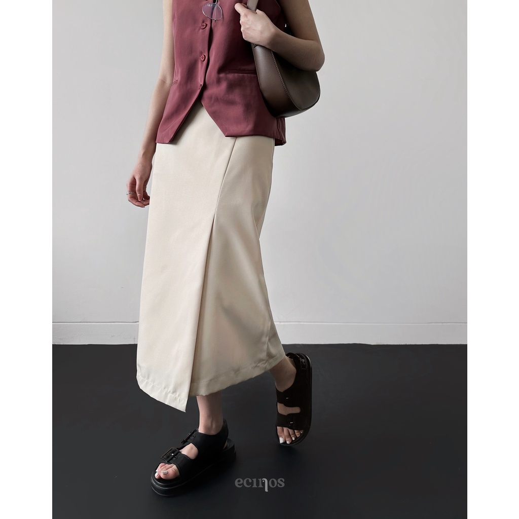 β’ Highwaisted straight-cut skirt with open front slit and cross stitch detail β’ Wrinkle-free semi wool material with inner furring π€ β’ Elasticated back; available in Midi & Maxi length