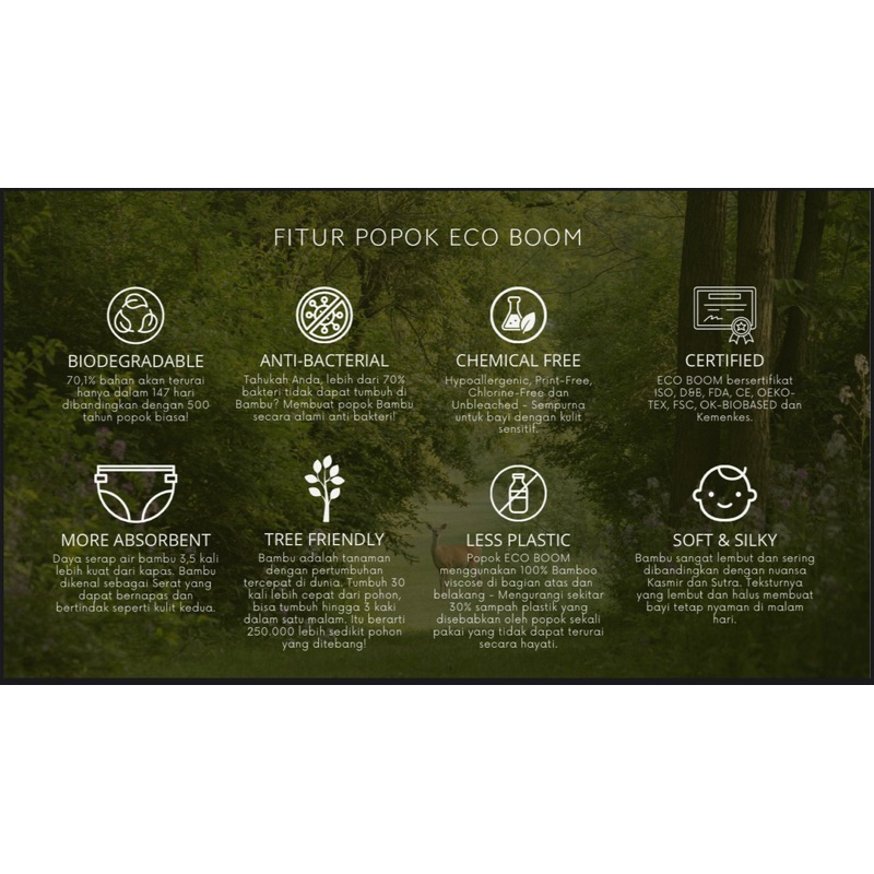 DETAIL PRODUK: Eco Boom Bamboo Diaper Ukuran: NB, S, M, L Tipe: Tape / Perekat