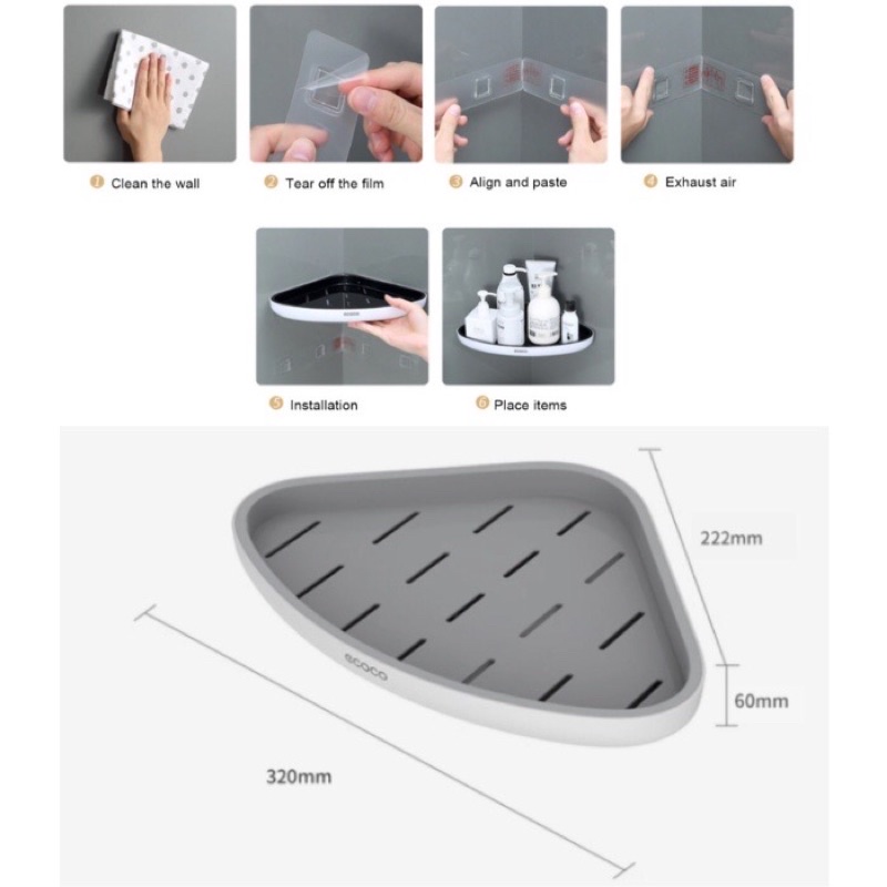 Detail ECOCO CORNER RACK RAK SIKU KAMAR MANDI BATHROOM SHELF SHAMPO CONDITIONER ORGANIZER TEMPAT SABUN SHAMPOO