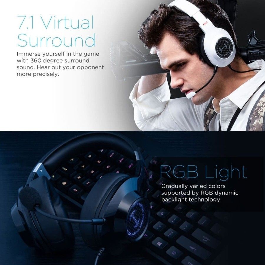 Edifier G2II Surround Sound USB Gaming Headset You can choose from classic black or white, or pink with cute cat ears on the headband! - 7.1 surround sound: 360° surround sound effect - RGB light effects: varied colors - 50mm NdFeB unit for clear sound - High-performance microphone - Compact design of soft leatherette earmuffs