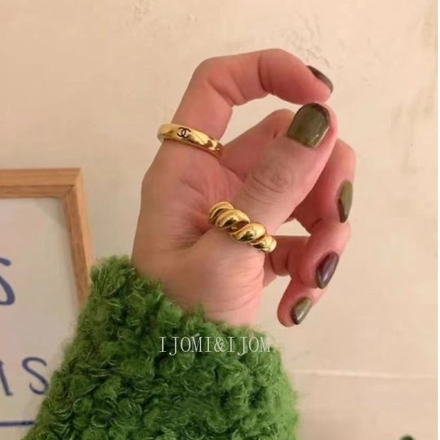 Edisi Korea Garis Minimalis Cincin Tidak Teratur Cahaya Mie Makanan Jari Cincin Dengan Rasa Desain Kecil Logam Cincin Terbuka