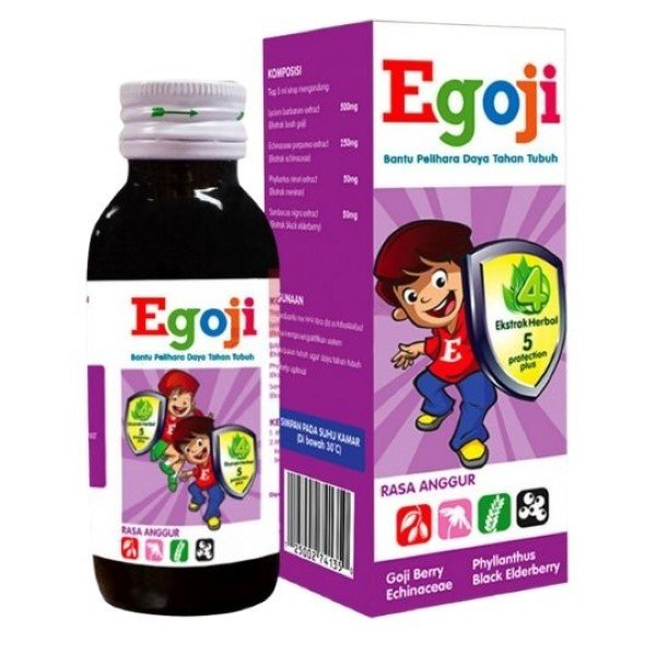 Keunggulan: • Egoji sirup dapat membantu meningkatkan daya tahan tubuh anak sehingga anak tidak mudah sakit. • Egoji sirup membantu penyembuhan ketika sakit. • Egoji sirup membantu anak agar tidak mudah sakit. • Egoji sirup memiliki rasa yang pasti disukai anak.