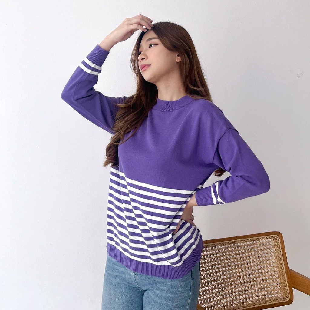Detail EIKO KNIT TOPS - sweater rajut katun wanita motif garis garis