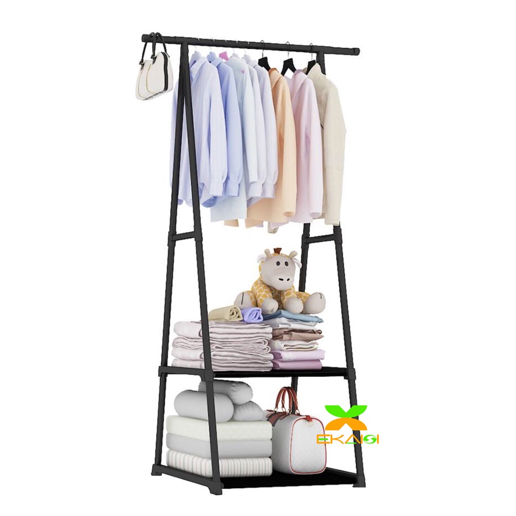 Triangle Stand hanger rak buku pakaian serbaguna dengan 4 roda hadir dengan desain segitiga 3 layer 2 susun yang dapat dengan mudah dibongkar pasang. Rak ini memiliki desain segitiga yang menjadikan rak ini memiliki konstruksi yang sangat kokoh dengan ruang untuk menyimpan baju yang cukup luas. Anda dapat menghemat tempat untuk menyimpan pakaian, sepatu, sandal dan aksesoris Anda.
