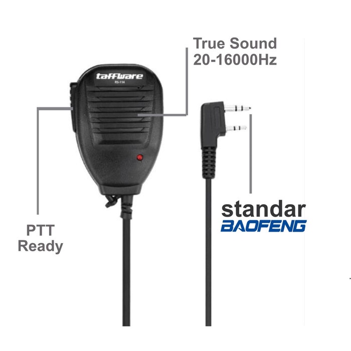 Speaker mikrofon ini dapat digunakan untuk walkie talkie Baofeng UV-5R UV5RA UV5RB UV5RC UV5RD UV5RE UV-3R+. mic ini juga berfungsi sebagai speaker untuk memancarkan suara walkie talkie yang diterima.