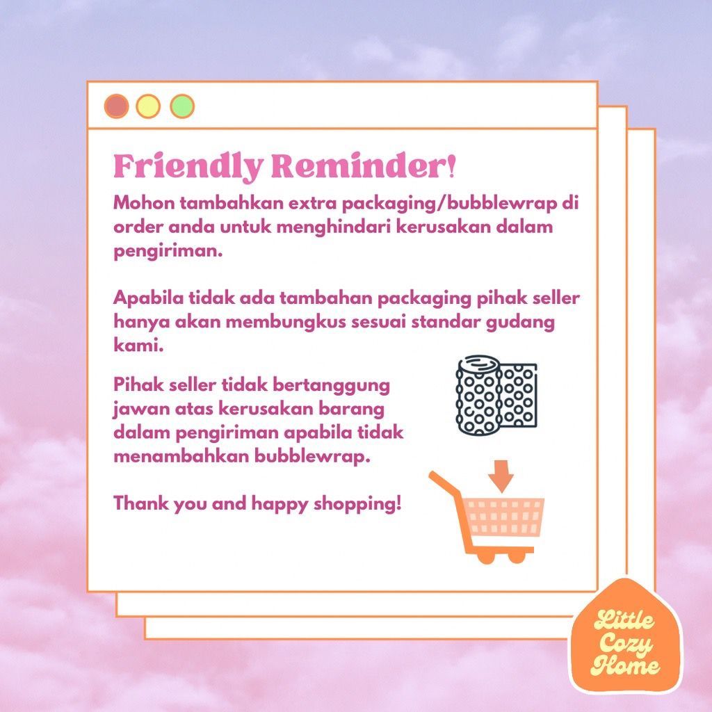 NOTE DARI SELLER : â–¶ Silahkan sertakan video Unboxing ketika membuka produk, agar jika ada kerusakan barang atau kekurangan barang. Pembeli dapat mengajukan penukaran atau permintaan kekurangan. TIDAK MENERIMA KLAIM TANPA VIDEO UNBOXING. â–¶Harga yang tertera adalah harga satuan. READY STOCK SIAP KIRIM â–¶ Perbedaan warna antara produk dengan gambar dapat terjadi dan disebabkan oleh pencahayaan atau tipe kamera yang digunakan saat pengambilan gambar. â–¶ Mohon dicek alamat serta titik alamatnya dan varian diinginkan, Setelah belanja TIDAK BISA GANTI alamat, warna, dan produk. â–¶ Sebelum dikirim barang barang sudah di cek terlebih dahulu. Dimohon agar video BUKA PAKET hingga penggunaan saat ingin ajukan KOMPLAIN ongkos kirim penukaran barang ditanggung oleh pembeli. â–¶ Lama pengiriman tidak dapat kami tentukan,karena akan tergantung pada kurir dan juga lokasi anda. â–¶ Kami tidak melakukan pengiriman barang di hari Minggu dan hari libur. â–¶ Jika barang barang sudah di terima jangan lupa beri penilaian toko kami.