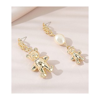 LRC anting Tusuk Fashion Gold Color Asymmetrical Bear Pearl Alloy Stud Earrings Y64845