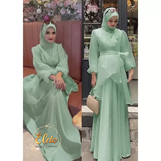 ELDE 12 - MAXI ORGANZA MAXY DRESS ( M - L - XL - XXL ) BAHAN VELVET BAGIAN CARDI ORGANZA DEPAN NYATU, LENGAN LAPIS ORGANZA, SLETING DAN KARET BELAKANG + BELT TALI ORGANZA ( NO BROSS )