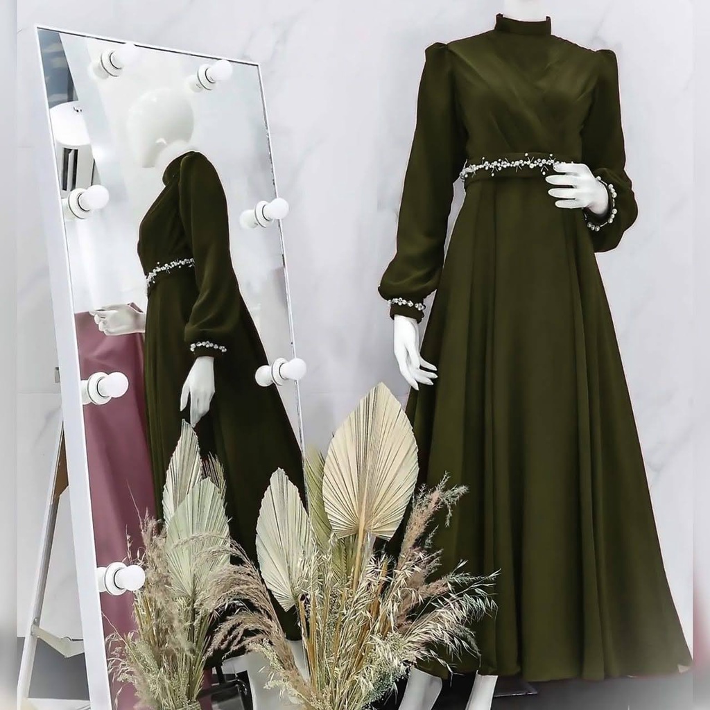 Fashion Muslim > Dress Muslim > Gamis > ELDE 77 - MAXY DRESS CLARA ( L - XL - XXL ) MATT SHAKILA, APLIKASI MUTIARA TEMBAK DIPINGGANG DAN TANGAN, SLETING DAN KARET BLKG