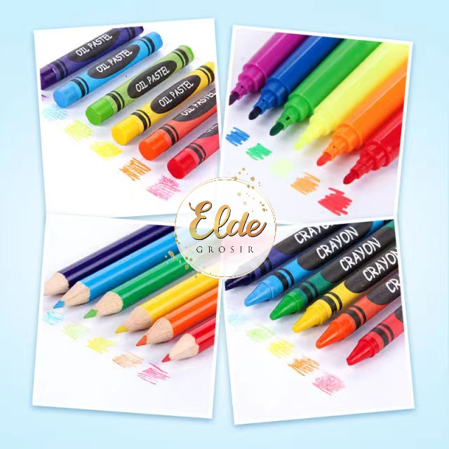 ISI PAKET CRAYON ANAK SET 208pcs 12 Mini Markers 24 Water Colours 48 Oil Pastels 24 Cryons 24 Colour Pencils 18 Watercolour Cakes 15 Drawing Paper 30 Paper Clips 4 Large Clips 1 (Pencil, Eraser, Sharpener, Palette, Glue, Brush, Ruler, Sponge) 1 Organizer with drawing board tas gelembung gratis Oil Pastel Crayon 208pcs dengan berbagai macam warna. Oil pastel lunak, kualitas premium serta warna cerah. Andalan saat lomba menggambar & mewarnai. Pigmen halus, lembut, bermutu tinggi memberikan rasa yang baik dan tahan luntur kertas, karton, linen, kanvas, kain dll. Mudah diaplikasikan. Intensitas warna yang pekat dan daya lekat yang tinggi sangat cocok untuk teknik seperti impasto dan scrappong kelembutan dan rendahnya residu menghasilkan karya seni yang elegan dan perpaduan warna yang sempurna. Kebutuhanmu dalam berkarya dan menjadi pilihan terbaik kamu.