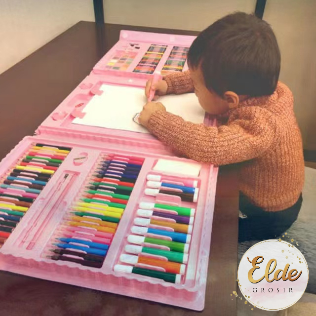 ELDE - Crayon Anak Pengasah 208pcs Set Alat Menggambar Melukis Anak-anak Crayon Cat Air Pensil