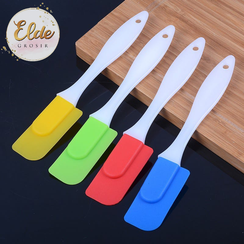 Spatula / scraper dari bahan silikon untuk keperluan memasak dan membuat kue/cake, hadir dalam warna-warni cemerlang. Permukaan lebih lebar juga.