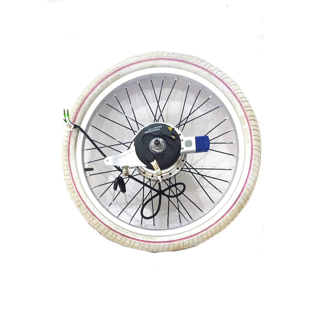 Set dinamo 48V yang telah dilengkapi dengan kunci, velg, freewheel dan ban seperti pada gambar dengan diameter velg 16 inch