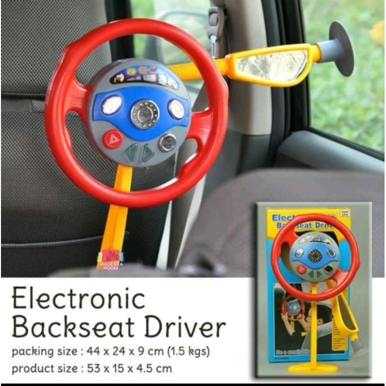 Electronic Backseat Driver / Stir Stiran This is one of my favourite toys... Belajar mengendara dengan baik. Dimulai dengan menghidupkan mesin dan diakhiri dengan menekan tombol yang sama untuk mematikan mesin. Ada sen kiri dan sen kanan disertai bunyi yang realistis. Ada lampu hazard yang menadakan bahaya. Gearnya terdiri dari 3 percepatan yang ditandai dengan naiknya lampu di odometer dan brake menandakan penurunan gear. semuanya disertai dengan sound yang realitis. Ada klakson kalau tidak sabar dengan pengendara yang terlihat nyantai didepan hehehe... Laughing. Dilengkapi karet hisap dan tiang penyangga jd bisa dilekatkan pada kaca mobil samping kiri dan kanan. Diameter setir 23cm. So full lights and full sounds..