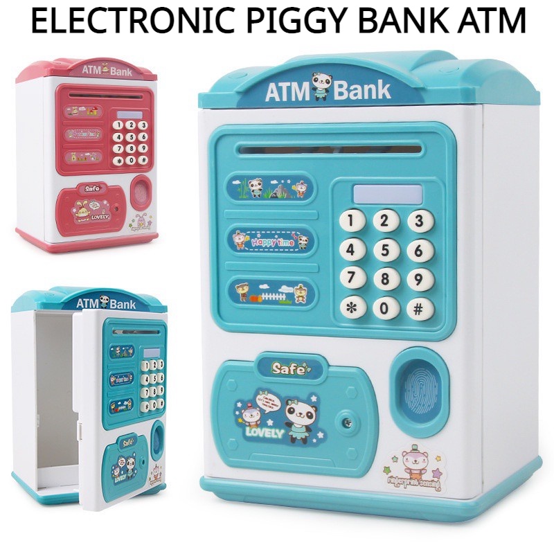 Video perkenalan produk Electronic Piggy Bank ATM Password Money Box Cash Coins Saving ATM Bank Safe Box Auto Scroll Paper Banknote Gift For Kids Toys. Sumber: Shopee.