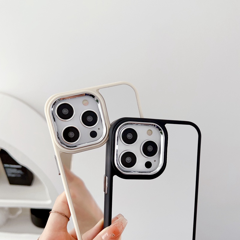 Handphone & Aksesoris > Casing & Skin > Casing & Skin Handphone > Electroplated silver Mke up Mirror SoftCase IPhone 7 8 Plus X Xr XS Max IPhone 11 12 13 14 Pro Max women's Fashion Camera protect Phone Case