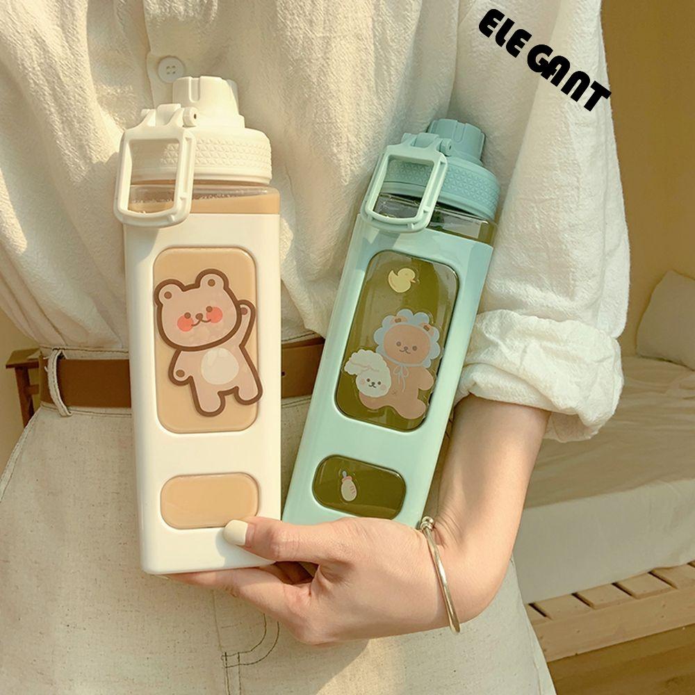Detail [Elegan] Botol Air Minum Lucu Dengan Stiker Beruang Bening Wadah Air Perlengkapan Dapur Perlengkapan Minum Outdoor Rumah Jus Kotak