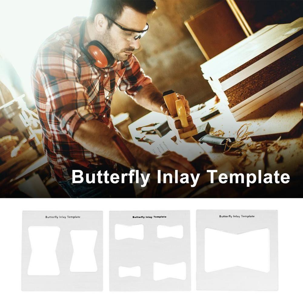 Detail [Elegan] Butterfly Inlay Template Transparan Scribing Alat Ukur Bushing Template Bowtie Kunci Bow Tie Joint Slot Cutting Scribing Ruler