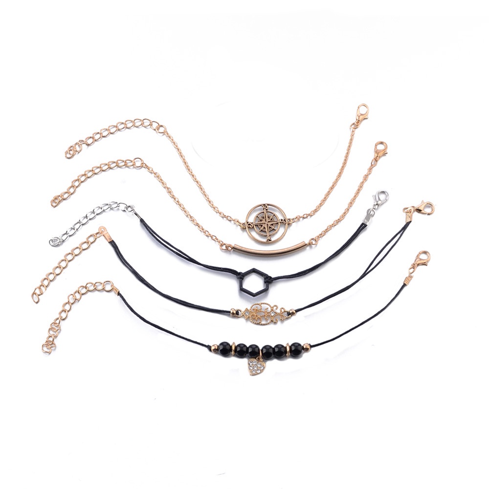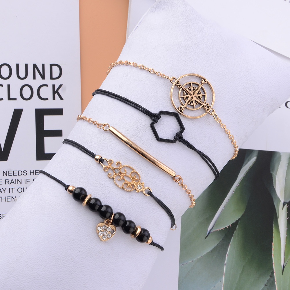 Detail Elegan Cahaya Mewah Berlian Cinta Manik-Manik Liontin Kepribadian Kompas Totem Hitam Hexagonal Gelang
