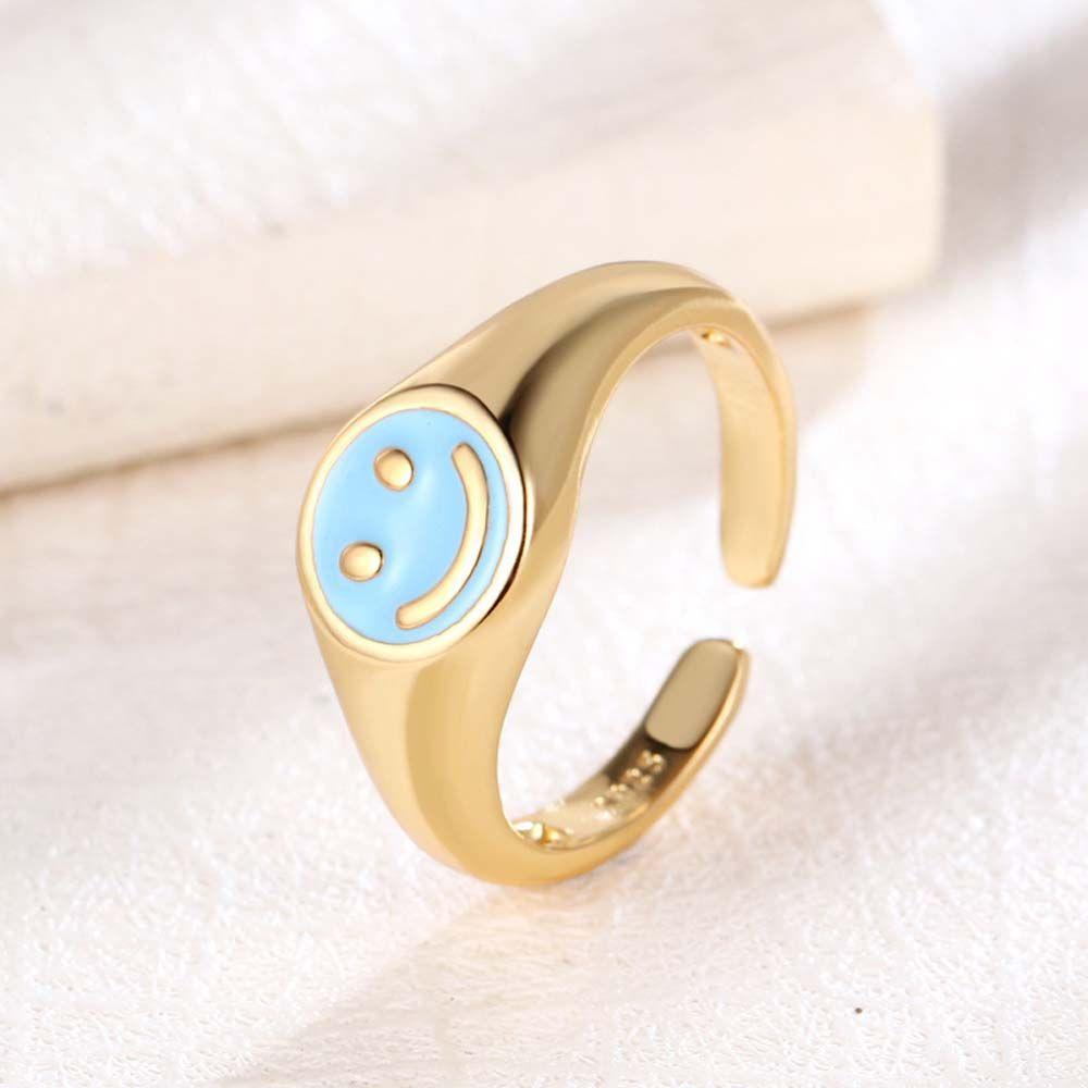 Kemasan: 1 pcs cincin Terbuka Cincin Jari Cincin Fashion Perhiasan Senyum Wajah Menetes Minyak Warna Permen Korea Wanita Gadis Lucu Lucu Sederhana Temperamen