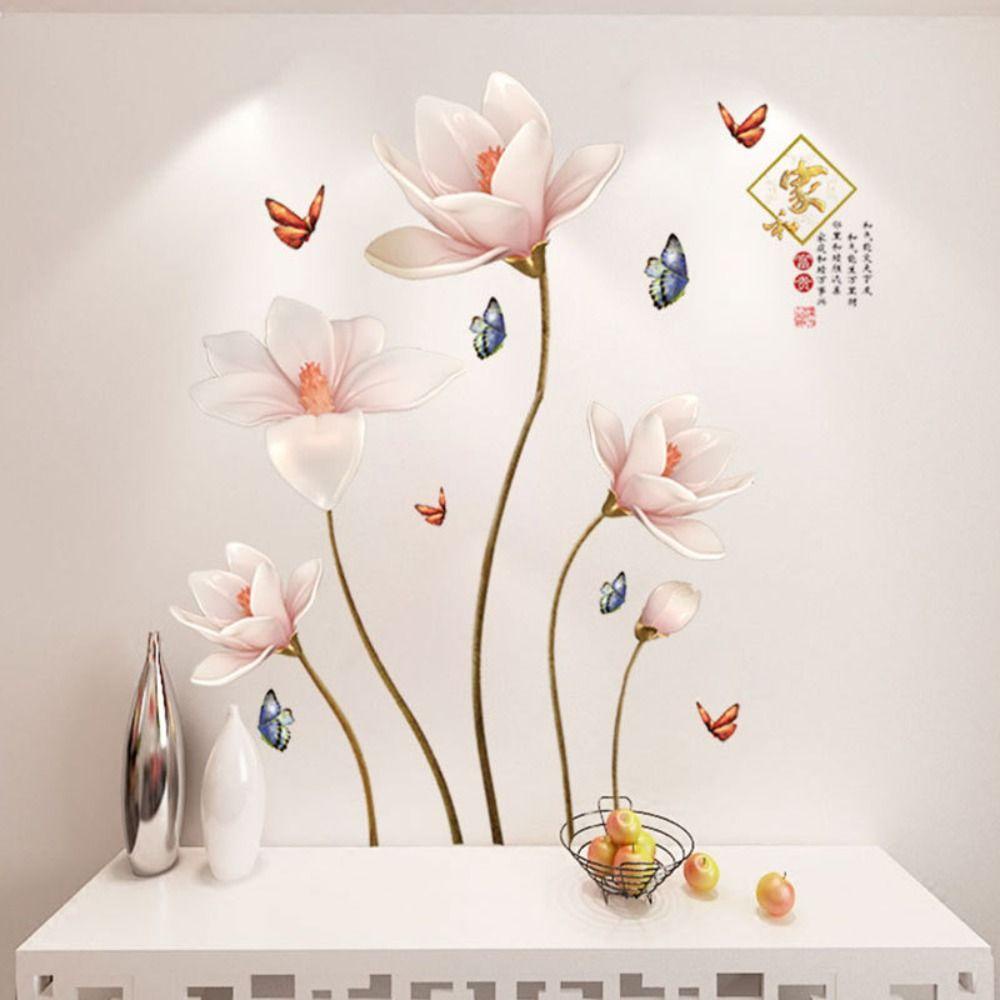 Perlengkapan Rumah > Dekorasi > Wallpaper & Stiker Dinding > [Elegan] Decals 2pcs/set Serbaguna Perekat Diri Sofa Latar Belakang Dekorasi Ruang Tamu PVC Kupu-Kupu Bunga