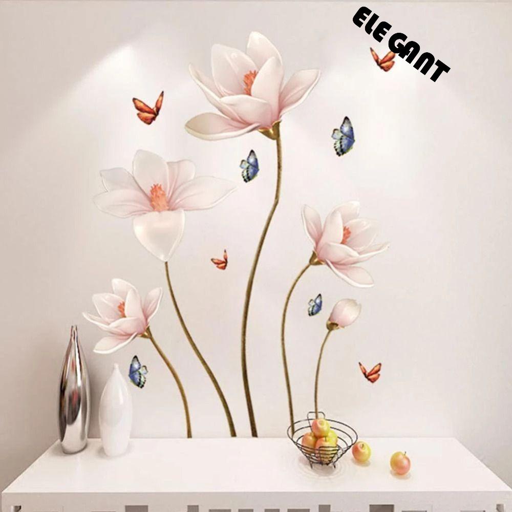 [Elegan] Decals 2pcs/set Serbaguna Perekat Diri Sofa Latar Belakang Dekorasi Ruang Tamu PVC Kupu-Kupu Bunga