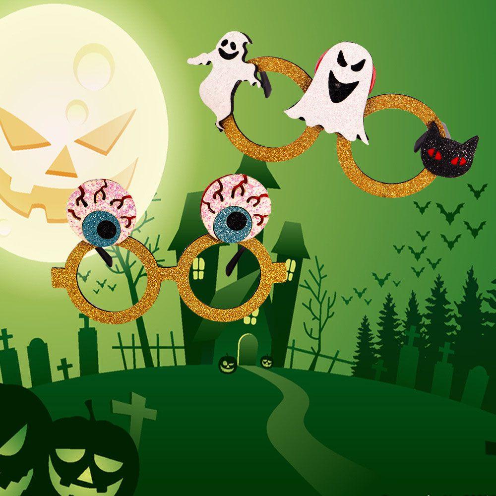 Detail [Elegan] Kacamata Halloween Glitter Kostum Dekorasi Hadiah Lucu Kelelawar Spider Tengkorak Halloween Festival Anak Properti Foto
