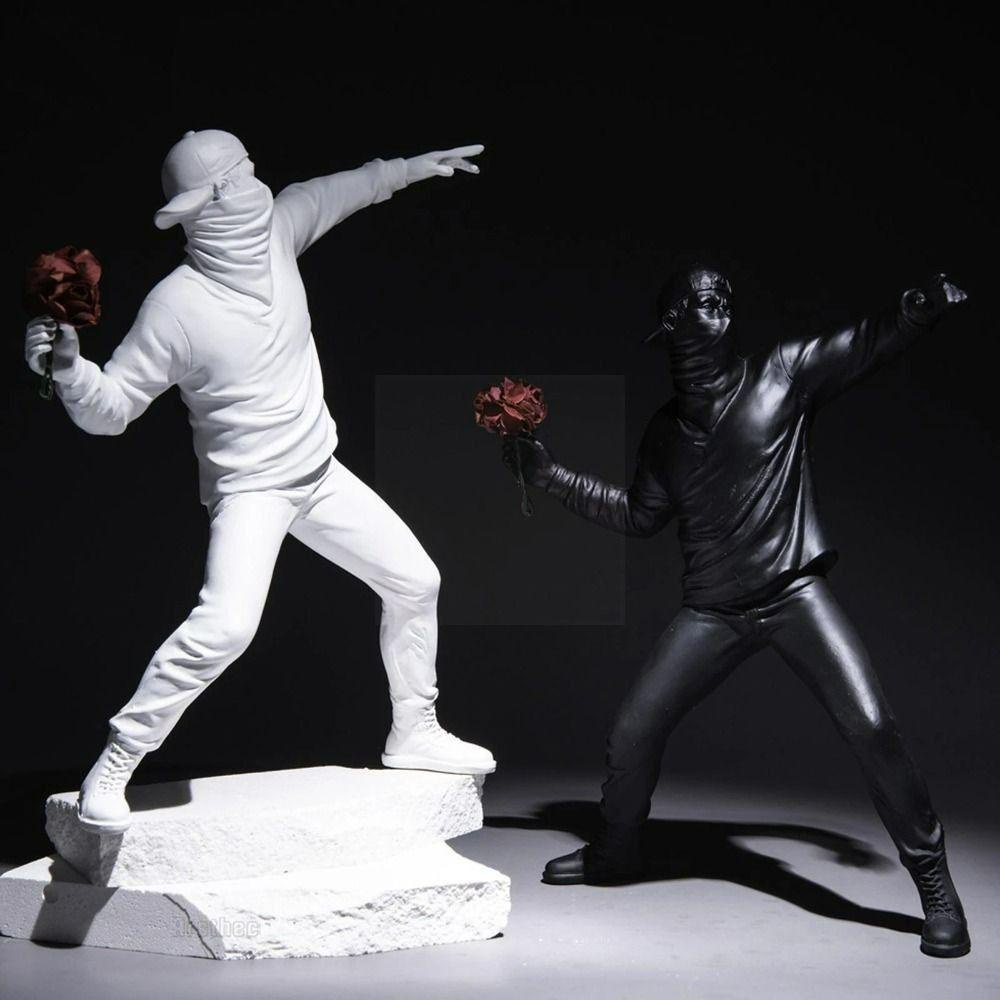 Hobi & Koleksi > Koleksi > Patung > [Elegan] Patung Banksy Kreatif Mewah Tahan Lama Lempar Bunga Anak Laki-Laki Dekorasi Rumah Lukisan Tangan Mudah Dibersihkan Mudah Digunakan Aksesoris Dekor Hiasan Meja