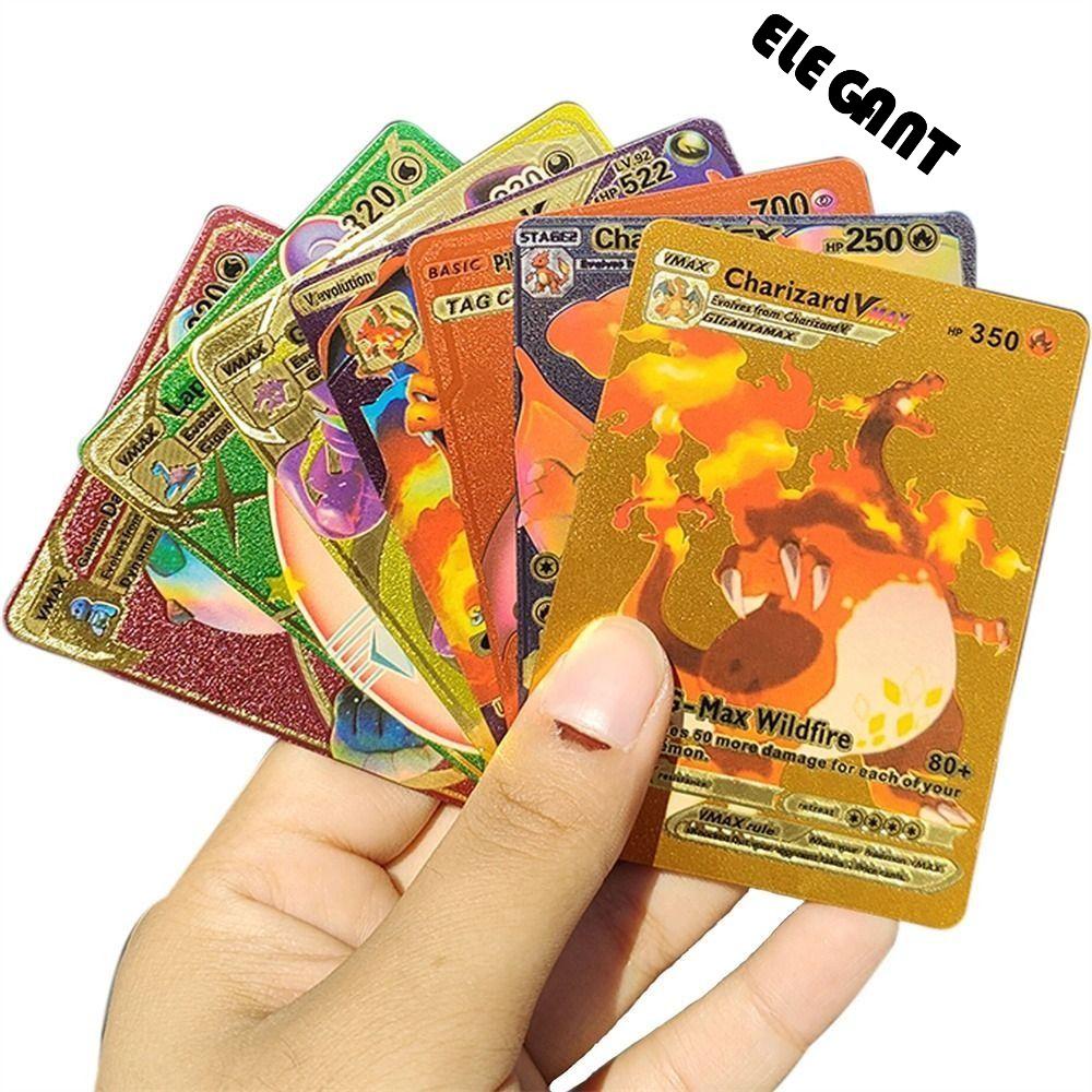 Karena perbedaan cahaya dan layar, warna item mungkin sedikit berbeda dari gambar. Kartu Pikachu Kartu Koleksi Pokomon Kartu Koleksi Kartu Api Emas Pernapasan Naga Pelatih Pertempuran Kartu Vmax GX Charizard Rainbow Cosplay Mainan Ulang Tahun Anak Hadiah Anime Bahasa Inggris
