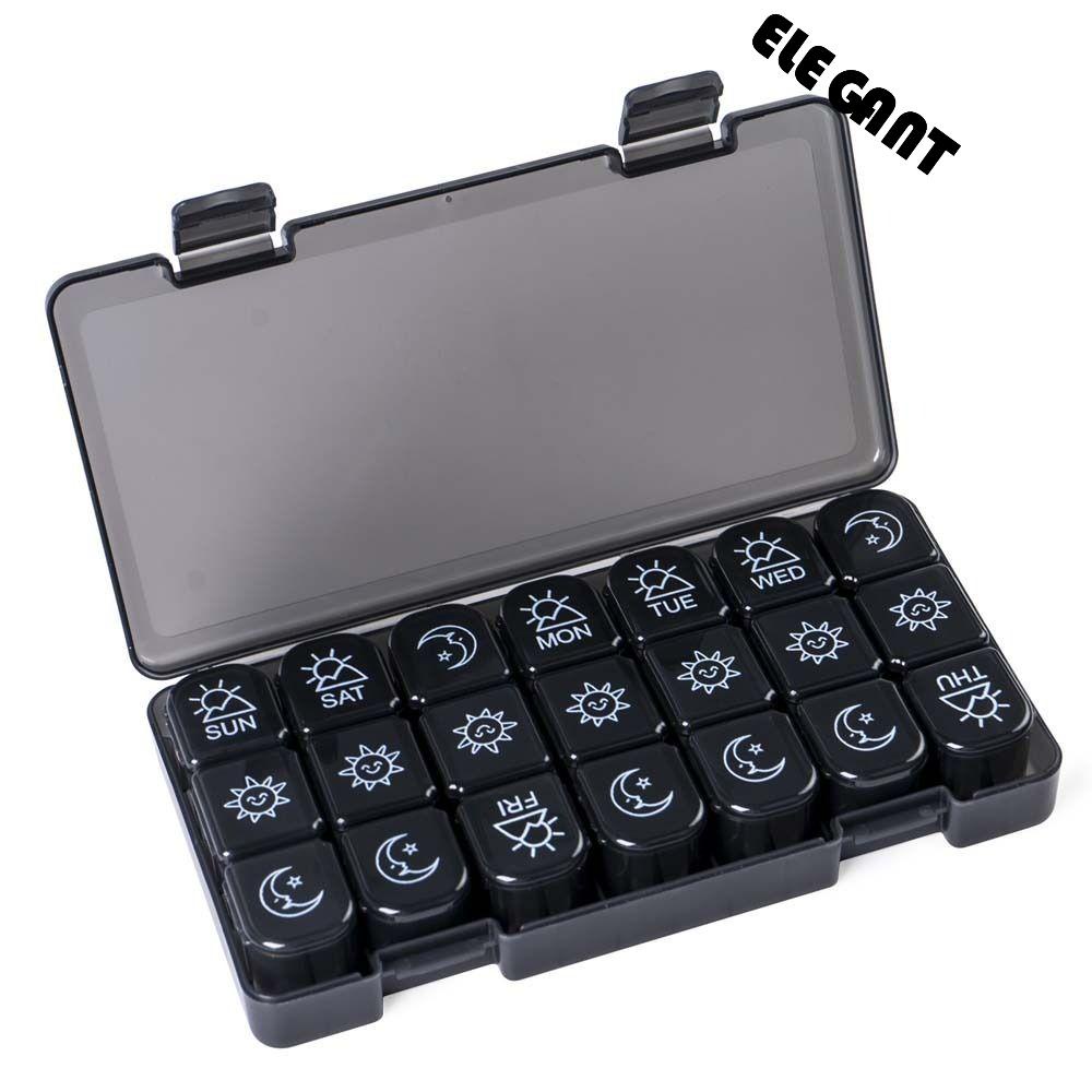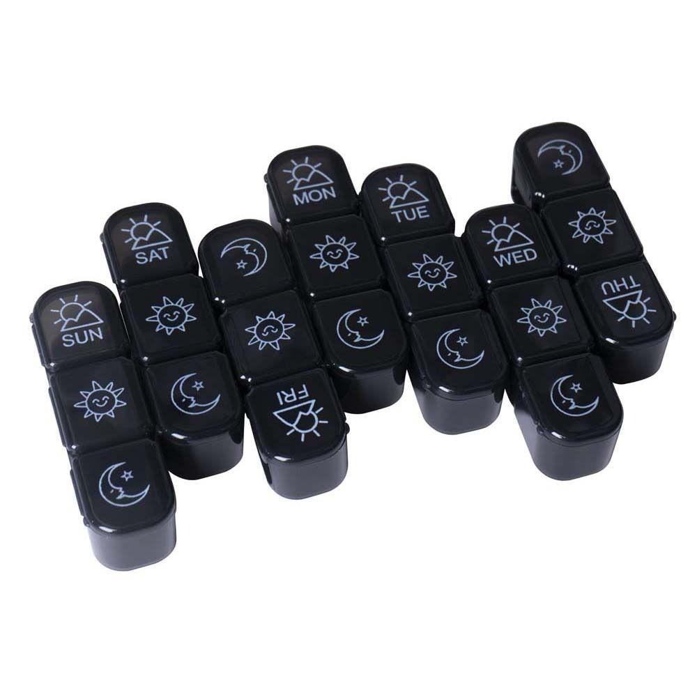Detail [Elegan] Pill Box Hitam 7hari Wadah Penyimpanan Tablet Obat Organizer Pill Splitters Pill Tablet Tempat Kotak Pil Mingguan