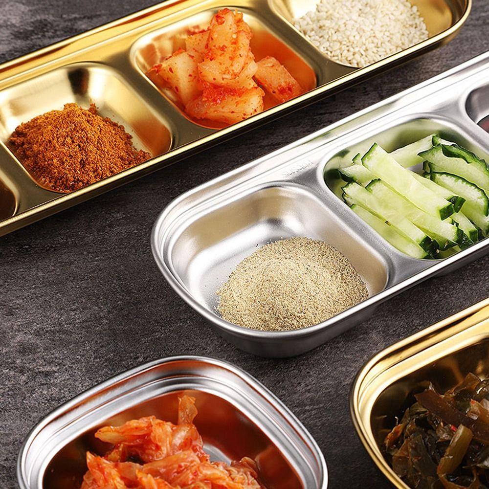 Mangkuk celup kami dapat digunakan untuk menyajikan hidangan kecil, makanan penutup, bumbu dan sebagainya. Bumbu dan sebagainya. Sesuai dengan rumah, restoran, ruang makan, dll, dll, dan lain-lain. Piring Bumbu Piring Bumbu Wadah Cuka Dapur Stainless Steel Restoran Bumbu 1/2/3/4 Kompartemen Kompartemen Rempah-rempah 1/2/3/4