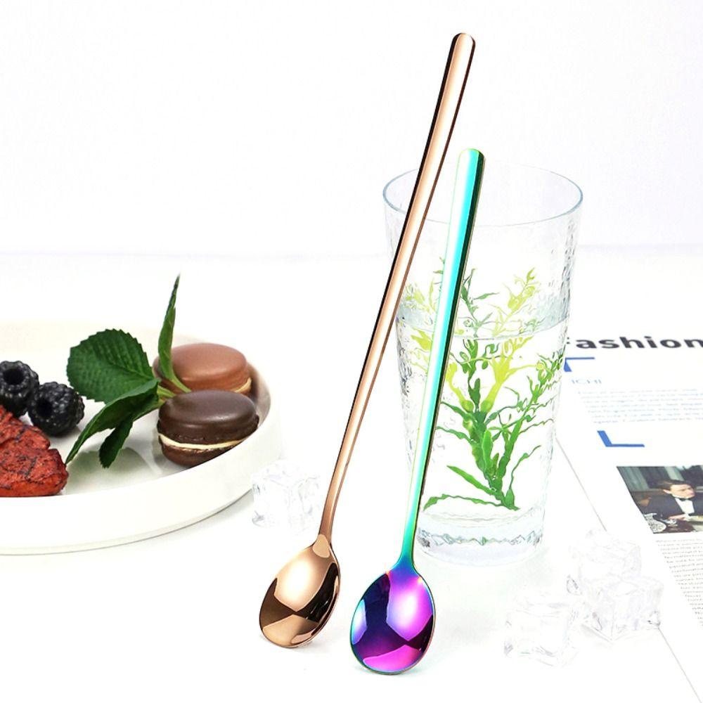 Perasaan Anda dan Keluarga Lebih Tenang dan Menyenangkan. Sendok Teh Pengaduk Kopi Alat Pengaduk Es Sendok Sendok Sendok Garpu Stainless Steel Pegangan Panjang Warna-warni Jus Es Krim Makanan Penutup Kue Koktail Bar Dapur Rumah
