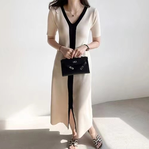 Detail 【Elegant】Slim Short Sleeves A-Line Knit Dress 7209