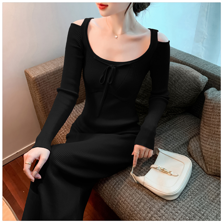 Detail 【Elegant】Solid Color Long Sleeve knit Bodycon Dress 7549