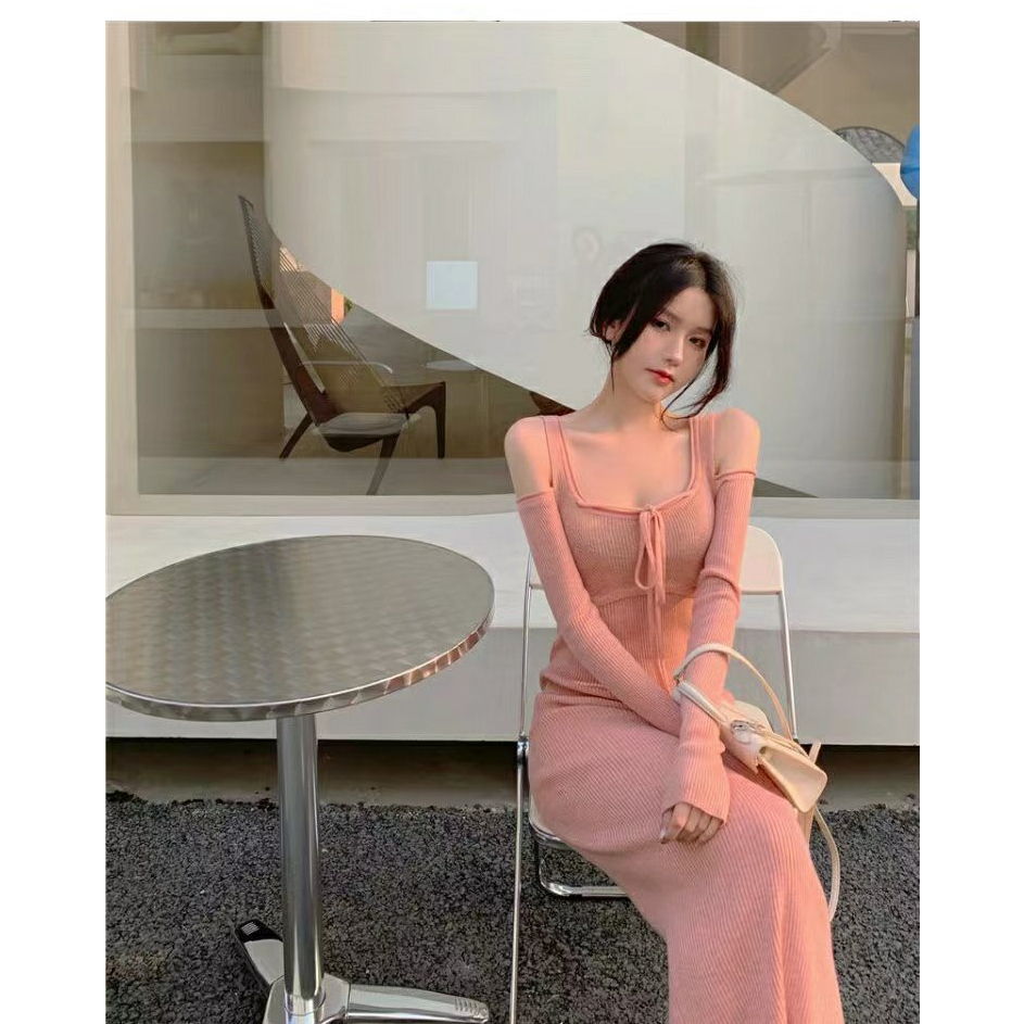 【Elegant】Solid Color Long Sleeve knit Bodycon Dress 7549