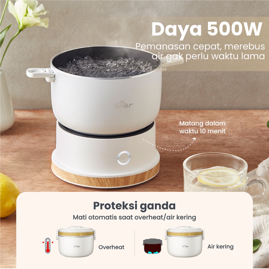 BEAR Travelling Multicooker 1L merupakan alat memasak multifungsi yang siap temenin kamu kemana saja! Ukuran yang compact dapat memudahkan ketika dibawa bepergian, dan bisa digunakan untuk berbagai jenis masakan loh! 😋
