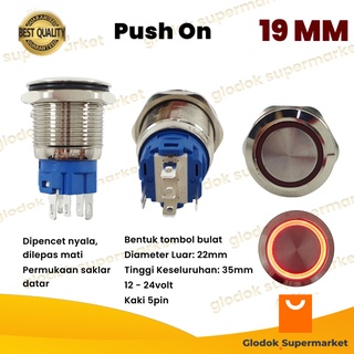 Switch Metal 19mm Push On 5 Pin Saklar Lampu Stainless 19 mm LED Tombol 12v 24v Momentary