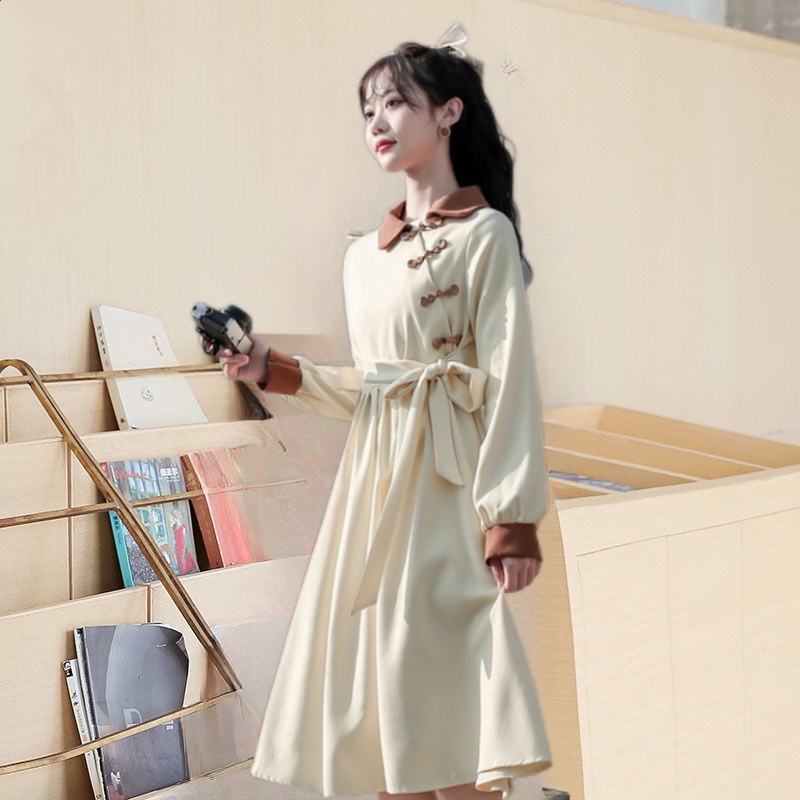 Detail Elemen Cina retro versi yang lebih baik dari gaun cheongsam wanita musim semi rok angin lembut baru yang cocok