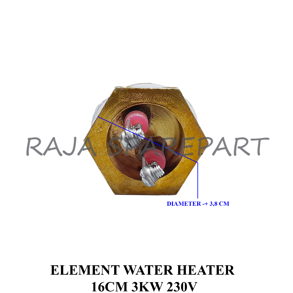 Detail Elemen Water Heater U Panjang 16cm 230V 3000W
