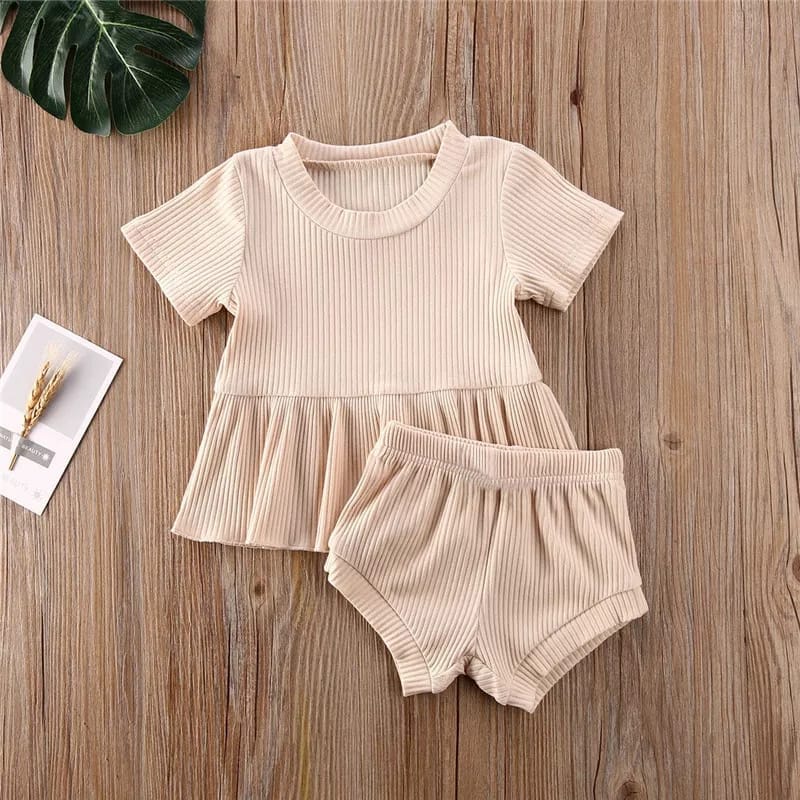 Elena Set Baju Bayi dan Anak Perempuan - Setelan Kaos Anak Ruffle Celana Pendek Pop